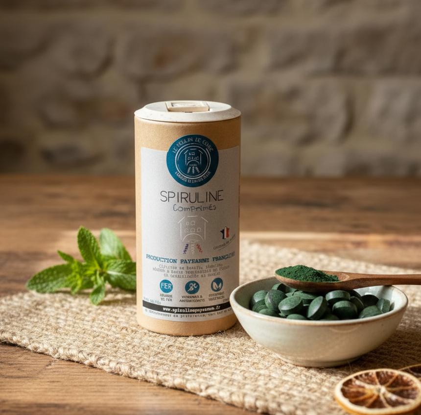 Le Moulin de Conné vous propose une gamme de spiruline paysanne produite au Moulin ou dans une autre ferme française partageant les mêmes modèles et processus de fabrication écologique et ou biologique.