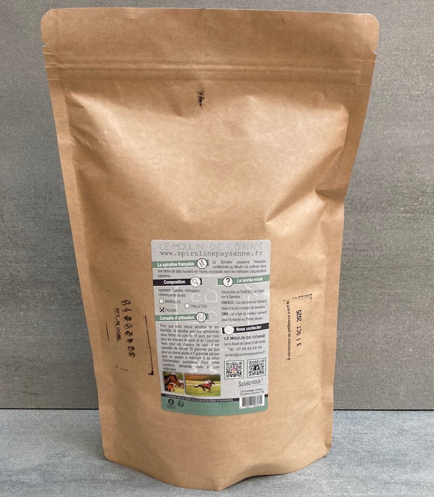En Poudre, cette spiruline paysanne pour votre animal pourra facilement se mélanger à de l’eau ou dans un repas solide.