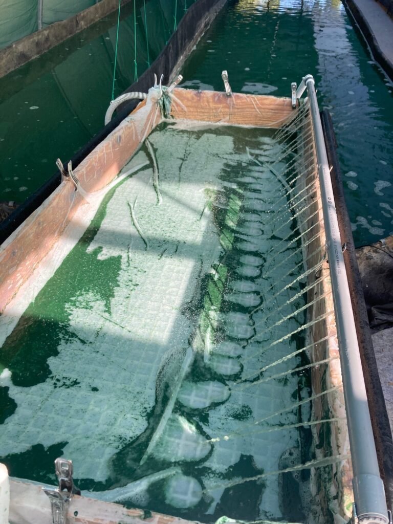 La récolte intervient lorsque la spiruline est suffisamment dense dans l’eau.