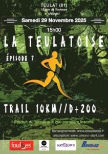 Venez partager votre passion pour la course à pied & la nature avec l’édition 2025 de la Teulatoise à Teulat (81500), charmant petit village à proximité de Lavaur sur les hauteurs du lac de la Balerme, une épopée nature dont le Moulin de Conné à Verfeil est partenaire.